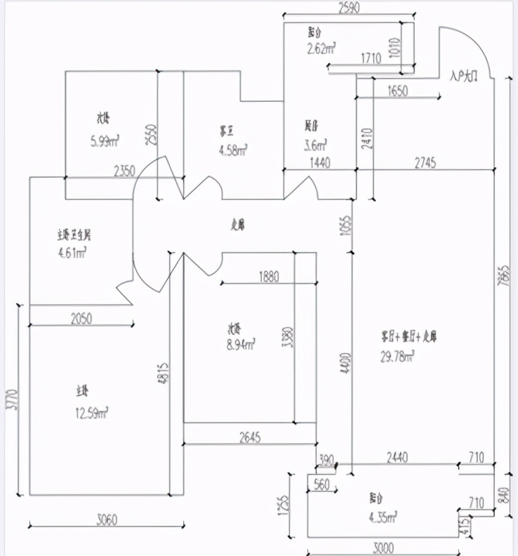 1.设计量房:找了装修公司的话,设计师会到毛坯房现场去量房;没找装修公司的话,需要业主亲自去量房。量房尺寸要精确到厘米,而且量房图纸也要画好、标注好,比如下面这样▼