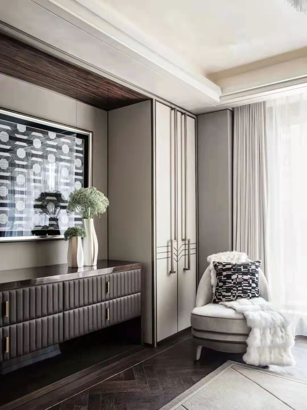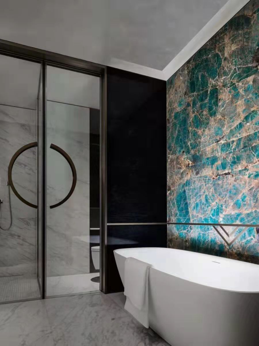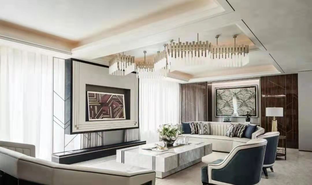 产品规格: 面积:330㎡ 风格:英伦风格 设计理念: 以冷静优雅的浅蓝色作基调,英伦风尚作为概念设计,将伦敦高级定制风格与海派风格相结合,提取现代主义元素进行融合点缀,打造独特的美学空间与永不过时的优雅奢华。